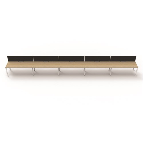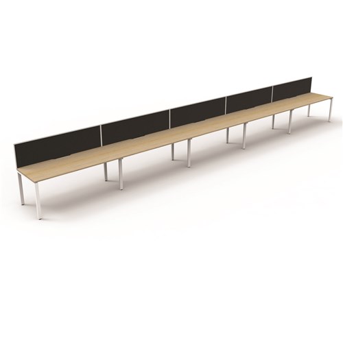Maximise space and create an efficient working environment with Deluxe Rapid Infinity. Configure multiple workstations together to create pods of desks. Overall: 6000mm W x 780mm D x 1200mm H (including screen). Per User: 1200mm W x 750mm D x 730mm H. 495mm H x 30mm T pinnable privacy screen upholstered in black fabric with matching white powder coat extrusion. Natural Oak worksurface with 410mm W x 50mm D scallop cable access. 60mm x 30mm Profile Leg adds a minimalist look to each workstation. Deeper 750mm top. Double support rail for extra strength. E0 Enviroboard. 5 Year Manufacturer's Warranty. Delivery, installation and assembly charges may apply to furniture. Please enquire to confirm.