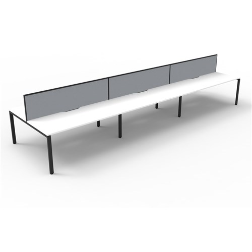 Maximise space and create an efficient working environment with Deluxe Rapid Infinity. Configure multiple workstations together to create pods of desks. Overall: 5400mm W x 1530mm D x 1200mm H. Per User: 1800mm W x 750mm D. Desk Height: 730mm. 495mm H x 30mm T pinnable privacy screen upholstered in grey fabric with matching black powder coat extrusion. Natural White worksurface with 410mm W x 50mm D scallop cable access. 60mm x 30mm Profile Leg adds a minimalist look to each workstation. Scalloped top for easy wire management. Double support rail for extra strength. E0 Enviroboard. 5 Year Manufacturer's Warranty. Delivery, installation and assembly charges may apply to furniture. Please enquire to confirm.