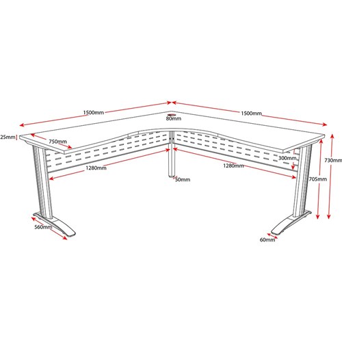 Natural Oak and White in colour. Sturdy powder coated frame and legs. Comes with metal perforated modesty panel. E0 melamine top. 1 x 80mm cable entry hole in corner of top. 750mm deep top for more workspace. Adjustable feet. 5 Years Manufacturer's Warranty. Delivery, installation and assembly charges may apply to furniture. Please enquire to confirm.