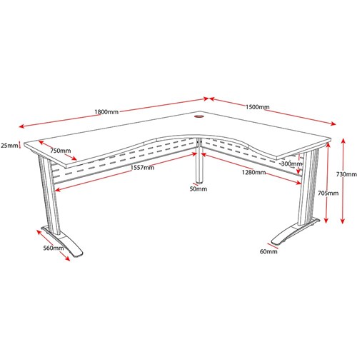 Natural Oak and Silver in colour. Sturdy powder coated frame and legs. Comes with metal perforated modesty panel. E0 melamine top. 1 x cable entry hole in corner of top. 750mm deep top for more workspace. Adjustable feet. 5 Years Manufacturer's Warranty. Delivery, installation and assembly charges may apply to furniture. Please enquire to confirm.