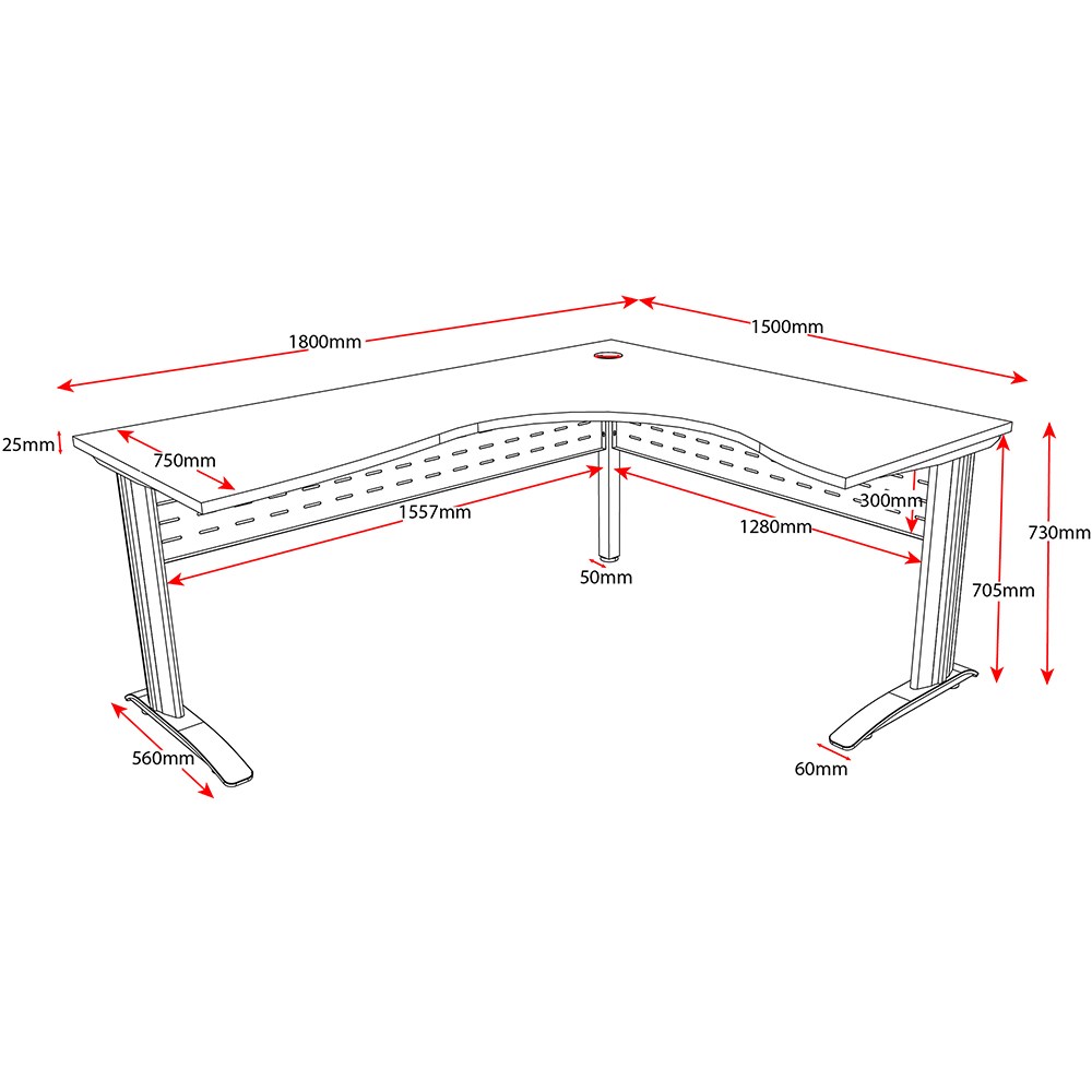 Natural Oak and White in colour. Sturdy powder coated frame and legs. Comes with metal perforated modesty panel. E0 melamine top. 1 x cable entry hole in corner of top. 750mm deep top for more workspace. Adjustable feet. 5 Years Manufacturer's Warranty. Delivery, installation and assembly charges may apply to furniture. Please enquire to confirm.