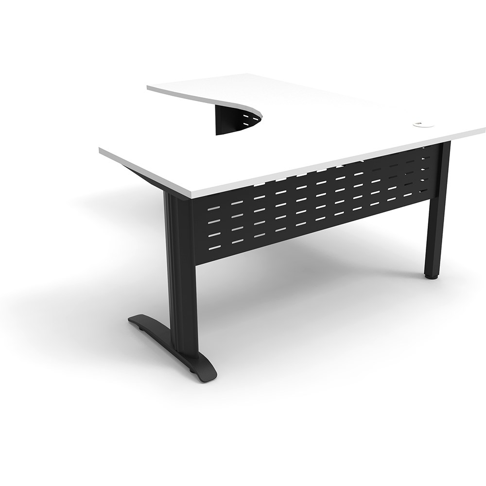 Natural White and Black in colour. Sturdy powder coated frame and legs. Comes with metal perforated modesty panel. E0 melamine top. 1 x cable entry hole in corner of top. 750mm deep top for more workspace. Adjustable feet. 5 Years Manufacturer Warranty. Delivery, installation and assembly charges may apply to furniture. Please enquire to confirm.