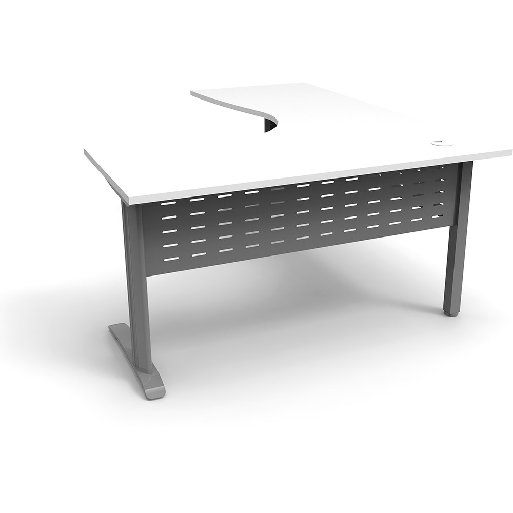 Natural White and Silver in colour. Sturdy powder coated frame and legs. Comes with metal perforated modesty panel. E0 melamine top. 1 x cable entry hole in corner of top. 750mm deep top for more workspace. Adjustable feet. 5 Years Manufacturer Warranty. Delivery, installation and assembly charges may apply to furniture. Please enquire to confirm.