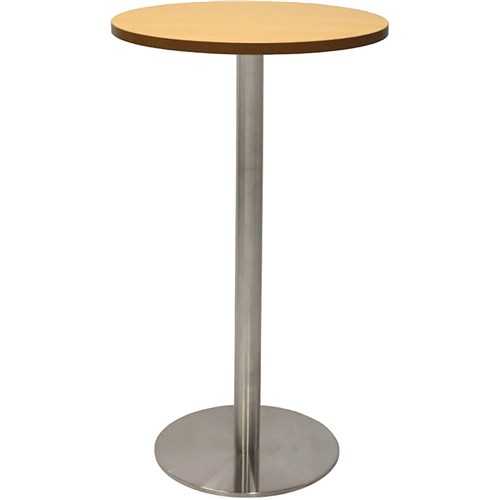 Rapidline Disc Base Dry Bar Table 600D x 1085mmH Beech Top Silver Base