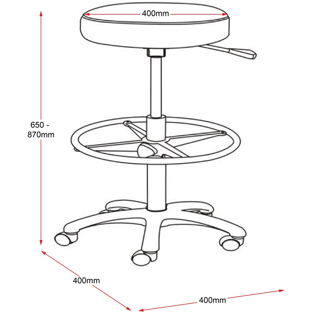 Counter height stool, ideal for labs and short periods of sitting at counter height. Upholstered in easy to clean black PU. Unit Dimensions: 400W x 400D x 650-870mmH. 3 Year Manufacturer's Warranty. Delivery, installation and assembly charges may apply to furniture. Please enquire to confirm.