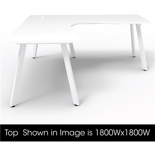 60mm x 30mm Splayed Leg Powder Coated Metal Frame Corner Desk Tops with Cable Port Hole Dual Cross Bar For Added Stability E1 Enviroboard Melamine Worksurface Adjustable Levelling Feet 5 Year Manufacturer's Warranty