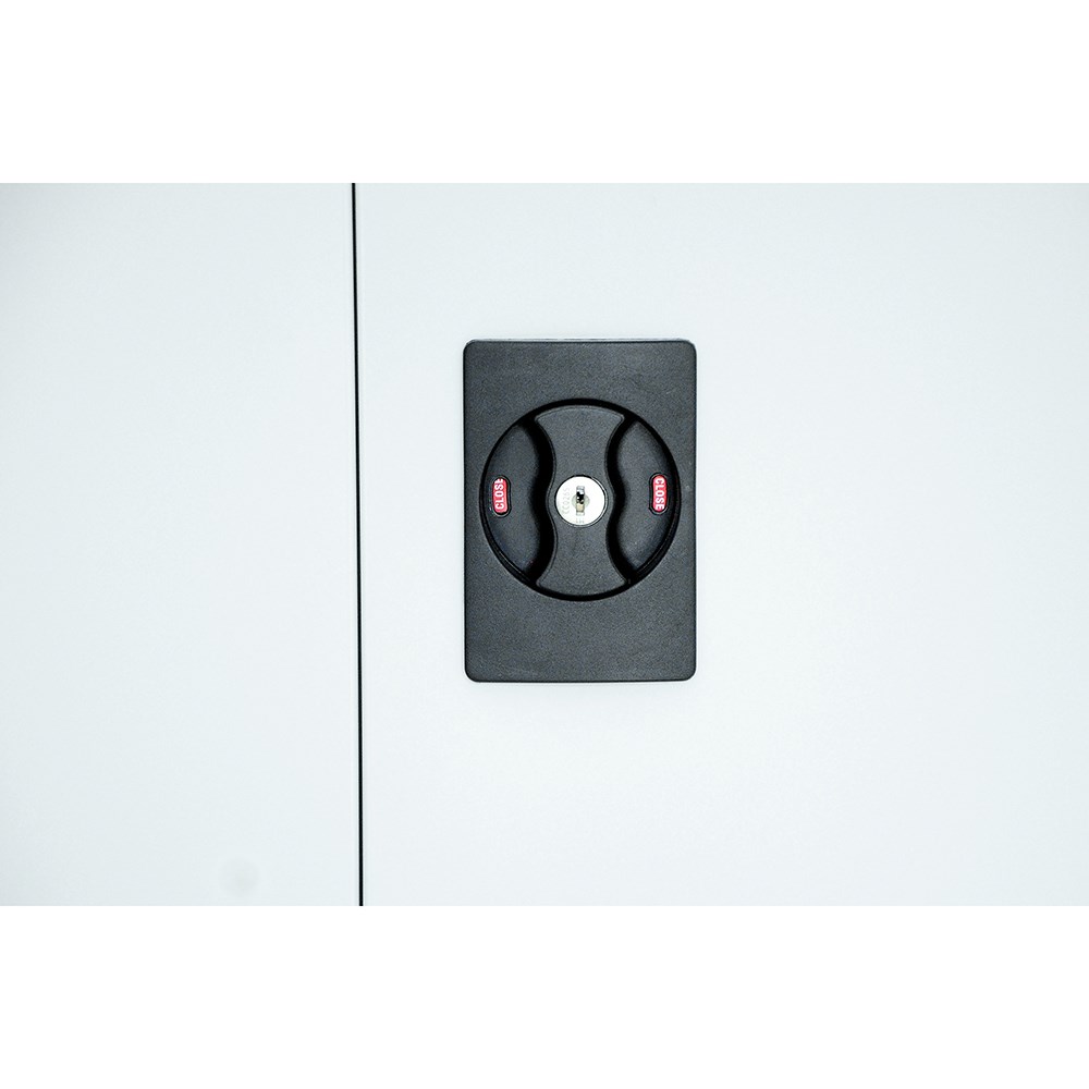 • GO swing door cupboards have a flush lock and three adjustable shelves.