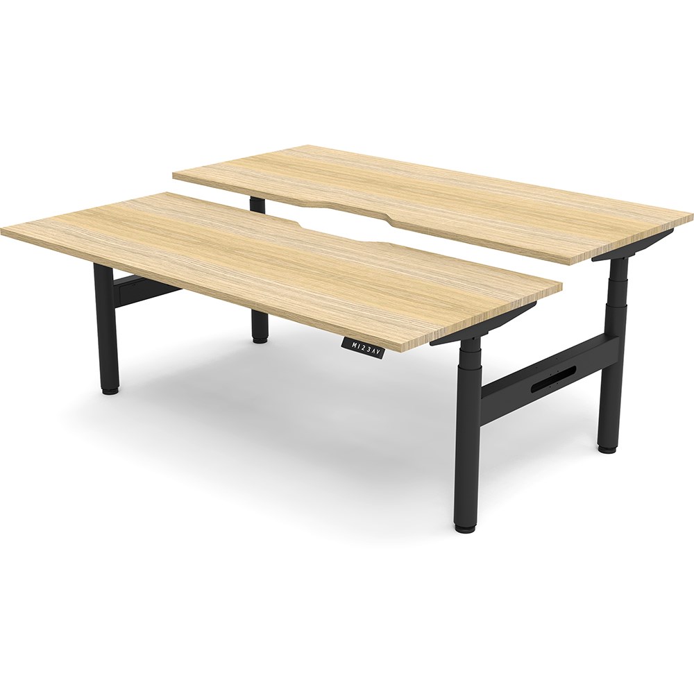 Natural Oak top with Black frame. Unit Dimension: 1200mm W x 1500mm D x 620-1270mm H. 750mm depth per user. E0 rated top. Powdercoat base. Digital control panel with 3 pre-set positions, LED display panel, keypad safety lock & reminder alarm setting. Anti-collision technology, noise emission of less than 50DB. Lifting capacity of 120kg with a max speed of 38mm per second. 70mm diameter round column legs. 700mm wide foot size with adjustable leveling feet, return foot: 700mm. 10 Year Manufacturer's Warranty. Delivery, installation and assembly charges may apply to furniture. Please enquire to confirm.
