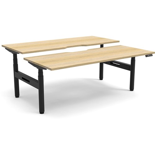 Natural Oak top with Black frame. Unit Dimension: 1500mm W x 1500mm D x 620-1270mm H. 750mm depth per user. E0 rated top. Powdercoat base. Digital control panel with 3 pre-set positions, LED display panel, keypad safety lock & reminder alarm setting. Anti-collision technology, noise emission of less than 50DB. Lifting capacity of 120kg with a max speed of 38mm per second. 70mm diameter round column legs. 700mm wide foot size with adjustable leveling feet, return foot: 700mm. 10 Year Manufacturer's Warranty. Delivery, installation and assembly charges may apply to furniture. Please enquire to confirm.