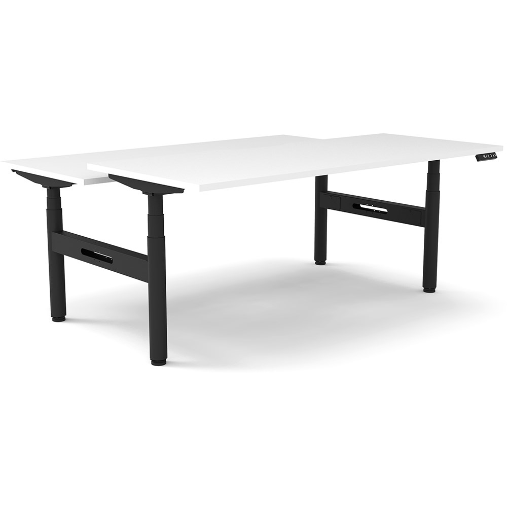 White top with Black frame. Unit Dimension: 1500mm W x 1500mm D x 620-1270mm H. 750mm depth per user. E0 rated top. Powdercoat base. Digital control panel with 3 pre-set positions, LED display panel, keypad safety lock & reminder alarm setting. Anti-collision technology, noise emission of less than 50DB. Lifting capacity of 120kg with a max speed of 38mm per second. 70mm diameter round column legs. 700mm wide foot size with adjustable leveling feet, return foot: 700mm. 10 Year Manufacturer's Warranty. Delivery, installation and assembly charges may apply to furniture. Please enquire to confirm.