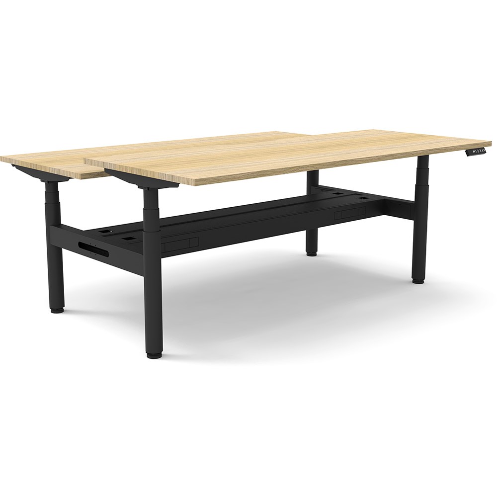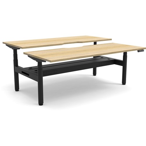 Natural Oak top with Black frame. Unit Dimension: 1500mm W x 1500mm D x 620-1270mm H. 750mm depth per user. E0 rated top. Powdercoat base. Digital control panel with 3 pre-set positions, LED display panel, keypad safety lock & reminder alarm setting. Anti-collision technology, noise emission of less than 50DB. Lifting capacity of 120kg with a max speed of 38mm per second. 70mm diameter round column legs. 700mm wide foot size with adjustable leveling feet, return foot: 700mm. Comes with cable tray for cable management. 10 Year Manufacturer's Warranty. Delivery, installation and assembly charges may apply to furniture. Please enquire to confirm.