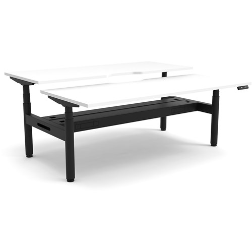 White top with Black frame. Unit Dimension: 1500mm W x 1500mm D x 620-1270mm H. 750mm depth per user. E0 rated top. Powdercoat base. Digital control panel with 3 pre-set positions, LED display panel, keypad safety lock & reminder alarm setting. Anti-collision technology, noise emission of less than 50DB. Lifting capacity of 120kg with a max speed of 38mm per second. 70mm diameter round column legs. 700mm wide foot size with adjustable leveling feet, return foot: 700mm. Comes with cable tray for cable management. 10 Year Manufacturer's Warranty. Delivery, installation and assembly charges may apply to furniture. Please enquire to confirm.