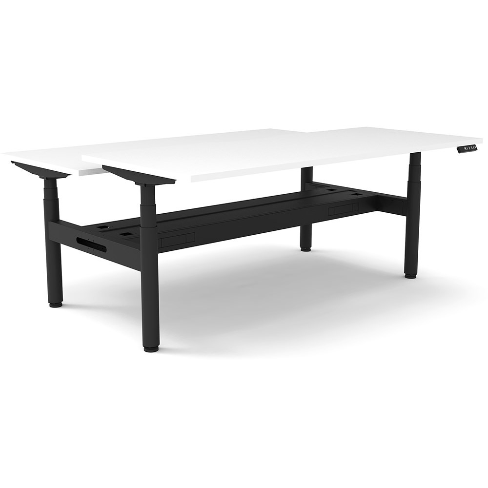 White top with Black frame. Unit Dimension: 1800mm W x 1500mm D x 620-1270mm H. 750mm depth per user. E0 rated top. Powdercoat base. Digital control panel with 3 pre-set positions, LED display panel, keypad safety lock & reminder alarm setting. Anti-collision technology, noise emission of less than 50DB. Lifting capacity of 120kg with a max speed of 38mm per second. 70mm diameter round column legs. 700mm wide foot size with adjustable leveling feet, return foot: 700mm. Comes with cable tray for cable management. 10 Year Manufacturer's Warranty. Delivery, installation and assembly charges may apply to furniture. Please enquire to confirm.
