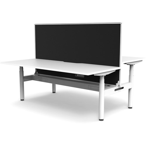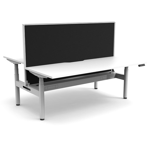 White top with White frame. Unit Dimension: 1800mm W x 1500mm D x 1330mm H. 620-1270mm height range for desk, 750mm depth per user. E0 rated top. Powdercoat base. Digital control panel with 3 pre-set positions, LED display panel, keypad safety lock & reminder alarm setting. Anti-collision technology, noise emission of less than 50DB. Lifting capacity of 120kg with a max speed of 38mm per second. 70mm diameter round column legs. 700mm wide foot size with adjustable leveling feet, return foot: 700mm. Comes with 30mm thick privacy screens and cable tray for cable management. 10 Year Manufacturer's Warranty. Delivery, installation and assembly charges may apply to furniture. Please enquire to confirm.