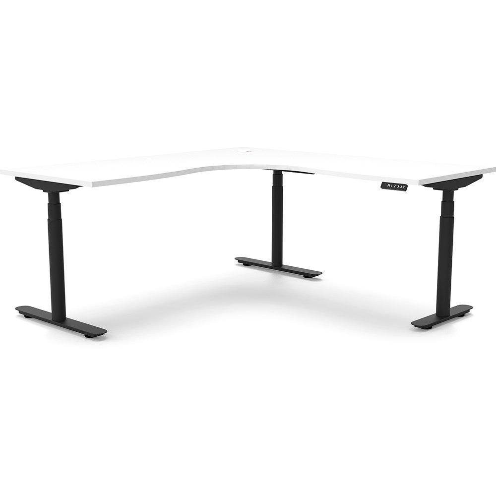 White top with Black frame. Unit Dimension: 1500/1500mm W x 750mm D x 620-1270mm H. E0 rated top. Powdercoat base. Digital control panel with 3 pre-set positions, LED display panel, keypad safety lock & reminder alarm setting. Anti-collision technology, noise emission of less than 50DB. Lifting capacity of 120kg with a max speed of 38mm per second. 70mm diameter round column legs. 700mm wide foot size with adjustable leveling feet, return foot: 700mm. 10 Year Manufacturer's Warranty. Delivery, installation and assembly charges may apply to furniture. Please enquire to confirm.