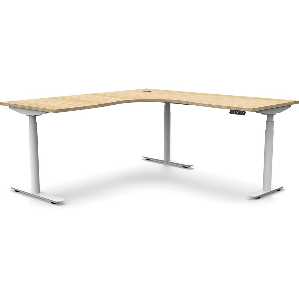 Natural Oak top with White frame. Unit Dimension: 1800/1500mm W x 750mm D x 620-1270mm H. E0 rated top. Powdercoat base. Digital control panel with 3 pre-set positions, LED display panel, keypad safety lock & reminder alarm setting. Anti-collision technology, noise emission of less than 50DB. Lifting capacity of 120kg with a max speed of 38mm per second. 70mm diameter round column legs. 700mm wide foot size with adjustable leveling feet, return foot: 700mm. 10 Year Manufacturer's Warranty. Delivery, installation and assembly charges may apply to furniture. Please enquire to confirm.