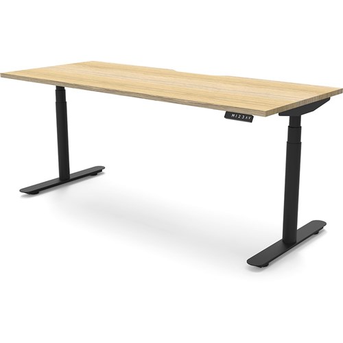 Natural Oak top with Black frame. Unit Dimension: 1200mm W x 750mm D x 620-1270mm H. E0 rated top. Powdercoat base. Digital control panel with 3 pre-set positions, LED display panel, keypad safety lock & reminder alarm setting. Anti-collision technology, noise emission of less than 50DB. Lifting capacity of 120kg with a max speed of 38mm per second. 70mm diameter round column legs. 700mm wide foot size with adjustable leveling feet, return foot: 700mm. 10 Year Manufacturer's Warranty. Delivery, installation and assembly charges may apply to furniture. Please enquire to confirm.
