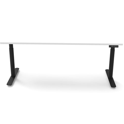 White top with Black frame. Unit Dimension: 1200mm W x 750mm D x 620-1270mm H. E0 rated top. Powdercoat base. Digital control panel with 3 pre-set positions, LED display panel, keypad safety lock & reminder alarm setting. Anti-collision technology, noise emission of less than 50DB. Lifting capacity of 120kg with a max speed of 38mm per second. 70mm diameter round column legs. 700mm wide foot size with adjustable leveling feet, return foot: 700mm. 10 Year Manufacturer's Warranty. Delivery, installation and assembly charges may apply to furniture. Please enquire to confirm.