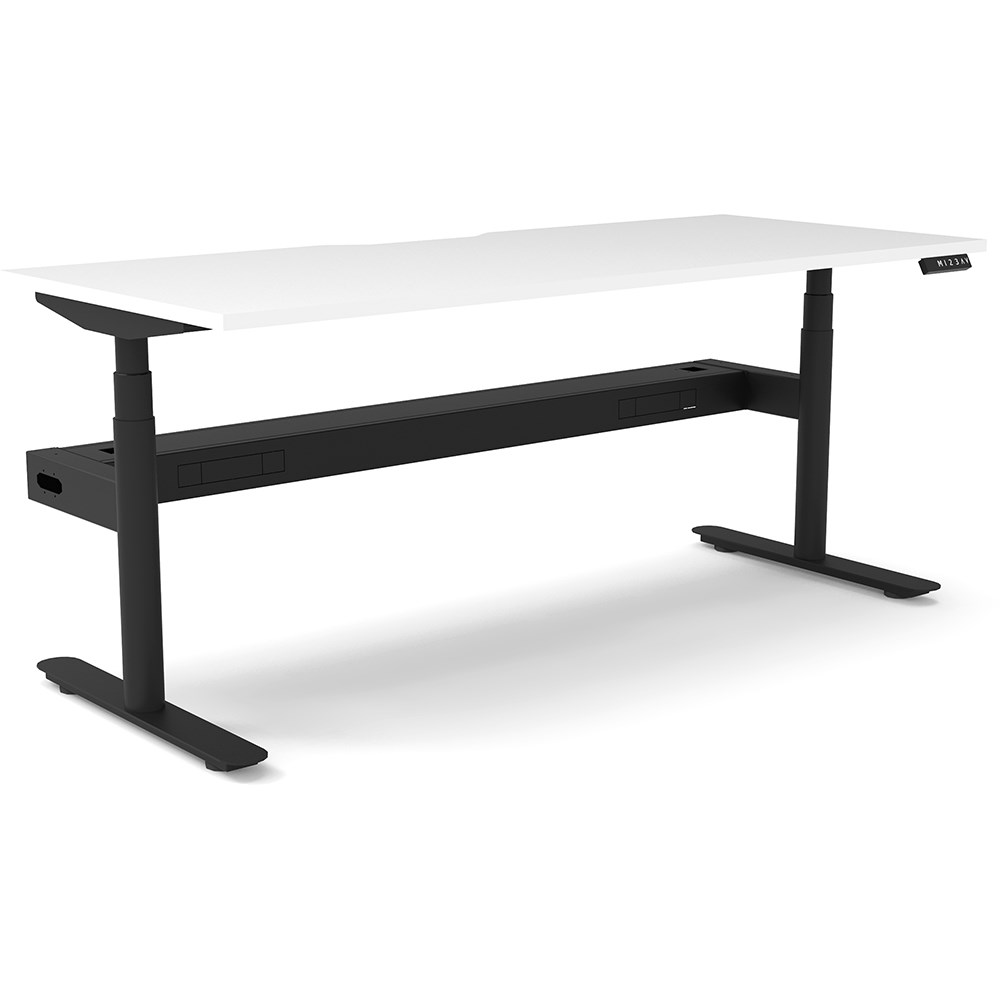 White top with Black frame. Unit Dimension: 1800mm W x 750mm D x 620-1270mm H. Comes with cable tray for cable management. E0 rated top. Powdercoat base. Digital control panel with 3 pre-set positions, LED display panel, keypad safety lock & reminder alarm setting. Anti-collision technology, noise emission of less than 50DB. Lifting capacity of 120kg with a max speed of 38mm per second. 70mm diameter round column legs. 700mm wide foot size with adjustable leveling feet, return foot: 700mm. Comes with cable tray for cable management. 10 Year Manufacturer's Warranty. Delivery, installation and assembly charges may apply to furniture. Please enquire to confirm.