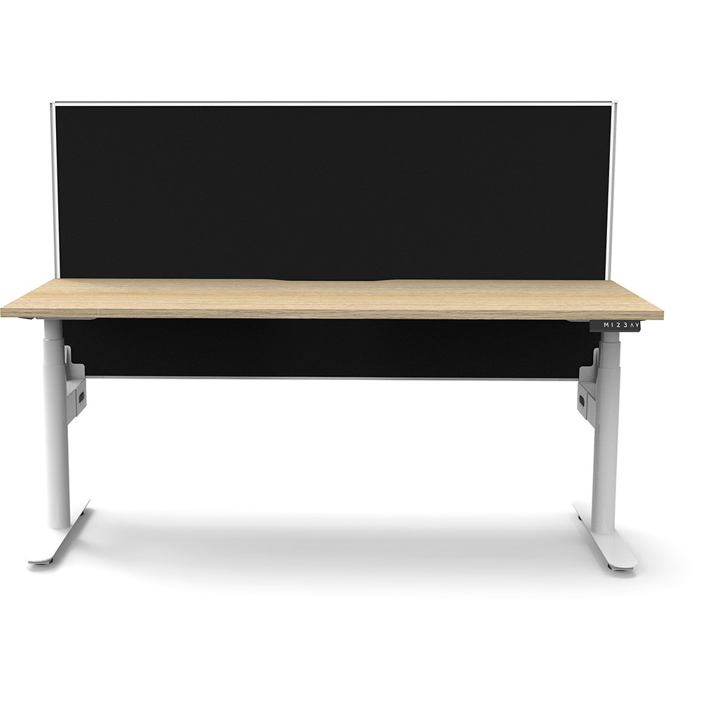 Natural Oak top with White frame. Unit Dimension: 1200mm W x 750mm D x 1330mm H. 620-1270mm height range for desk. E0 rated top. Powdercoat base. Digital control panel with 3 pre-set positions, LED display panel, keypad safety lock & reminder alarm setting. Anti-collision technology, noise emission of less than 50DB. Lifting capacity of 120kg with a max speed of 38mm per second. 70mm diameter round column legs. 700mm wide foot size with adjustable leveling feet, return foot: 700mm. Comes with 30mm thick privacy screen. 10 Year Manufacturer's Warranty. Delivery, installation and assembly charges may apply to furniture. Please enquire to confirm.