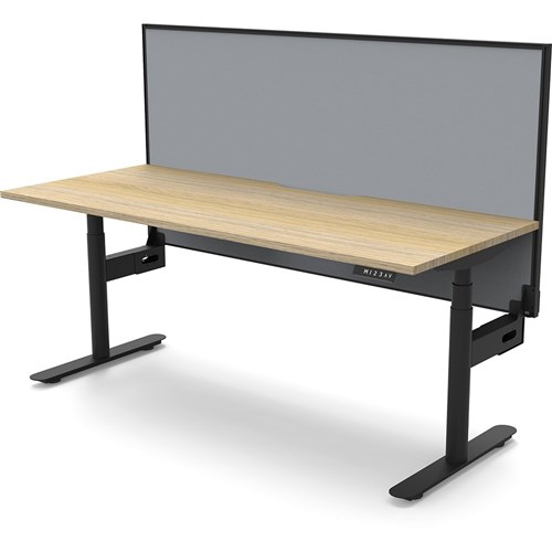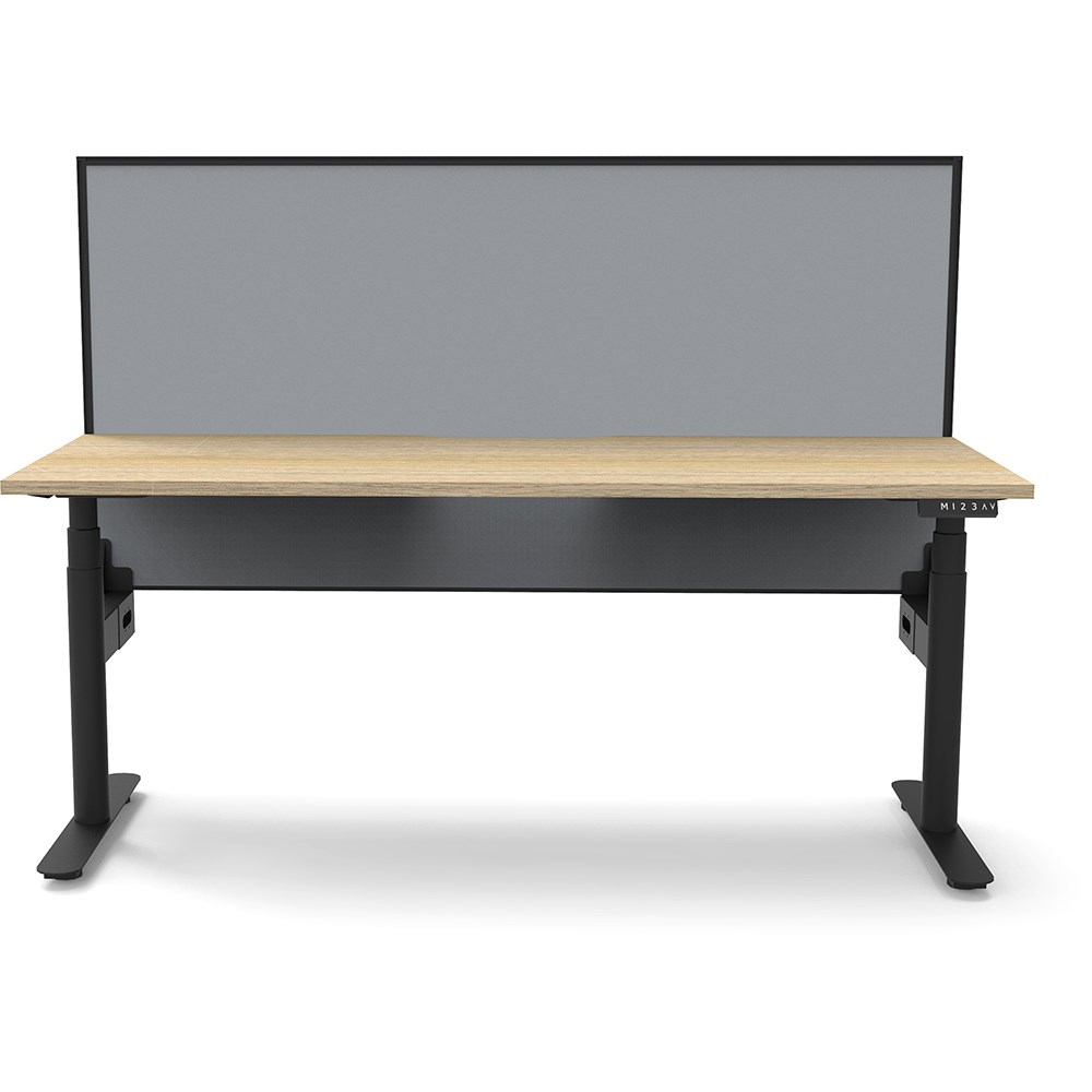 Natural Oak top with Black frame. Unit Dimension: 1500mm W x 750mm D x 1330mm H. 620-1270mm height range for desk. E0 rated top. Powdercoat base. Digital control panel with 3 pre-set positions, LED display panel, keypad safety lock & reminder alarm setting. Anti-collision technology, noise emission of less than 50DB. Lifting capacity of 120kg with a max speed of 38mm per second. 70mm diameter round column legs. 700mm wide foot size with adjustable leveling feet, return foot: 700mm. Comes with 30mm thick privacy screen. 10 Year Manufacturer's Warranty. Delivery, installation and assembly charges may apply to furniture. Please enquire to confirm.