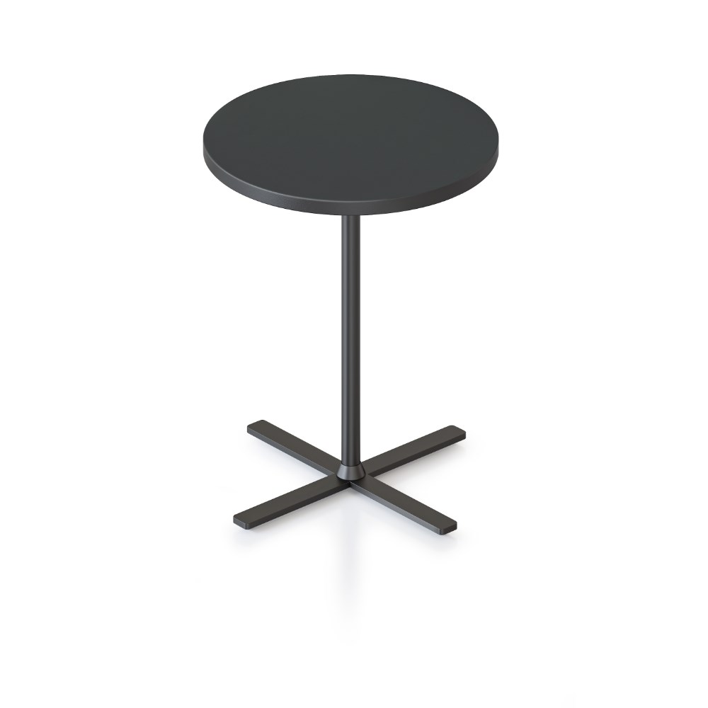 Dimensions: 500mm Diameter x 587mm High. 25mm thick table top. 4 leaf cross base powder coated underframe. Adjustable leveling feet. E0 enviroboard melamine worksurface. Note: Order with 587mmH Kolo table to create a nesting pair. 5 Year Manufacturer's Warranty. Delivery, installation and assembly charges may apply to furniture. Please enquire to confirm.