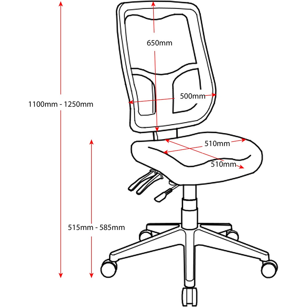 • Seat size of 510mm W x 510mm D, seat height of 515 - 585mm H.