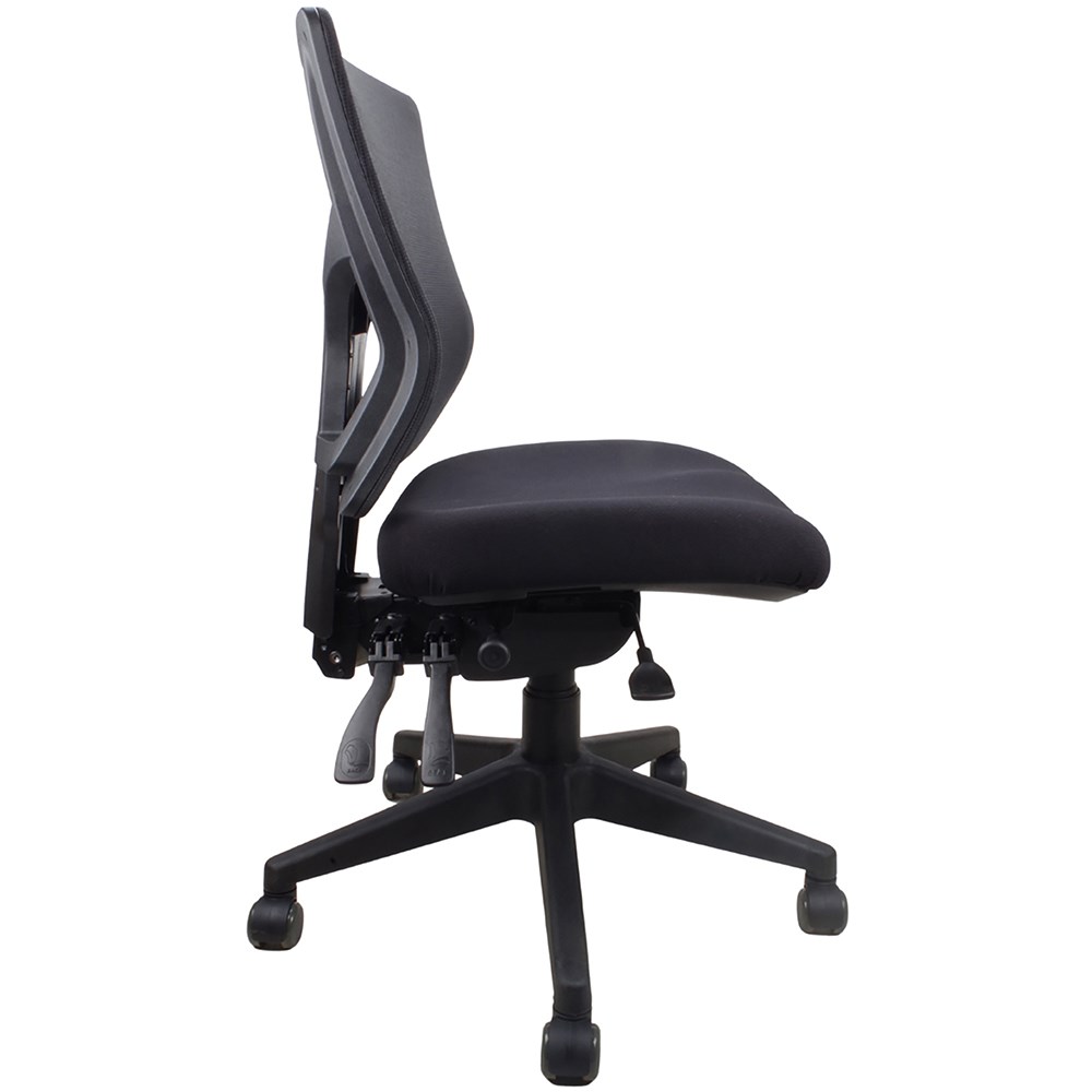 Fully ergonomic and has a 4 lever heavy-duty mechanism with seat slide. The luxurious moulded foam seat, mesh back and five-star spider base ensure comfort and durability. Adjustable arms available as additional extra. AFRDI level 6. AFRDI load rated to 160Kg. BIFMA tested. Chair Dimensions: Seat 510W x 480D x Back 450H x Seat 490-555mmH. 10 Year Manufacturer's Warranty.