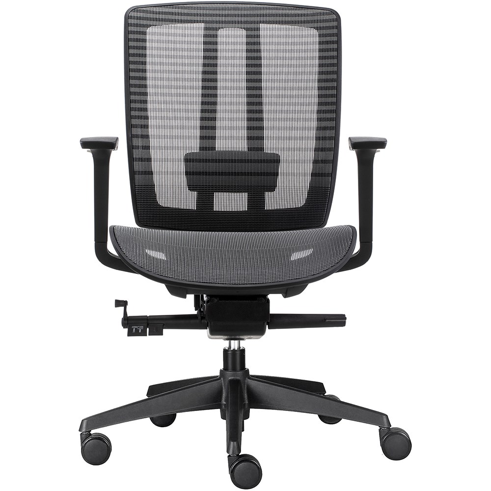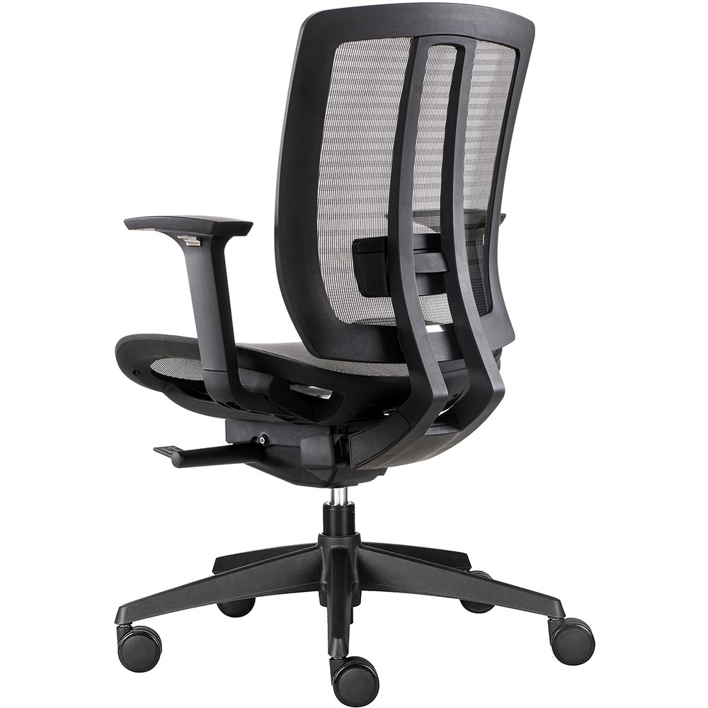 A stylish and ideal chair for any type of work environment. The mesh finish provides the ultimate comfort and breathability. Donati-Dopo weight sensitive mechanism with 5 positions. Black Korean mesh back rest and seat pan. Height adjustable nylon arm rests. Black 5 star base with black 60/25 PU castors. 135 Kg weight rating. Chair Dimensions: Seat 490W x 515D x Seat 470-540mmH. Overall height: 1150-1220mmH. 10 Year Manufacturer's Warranty.