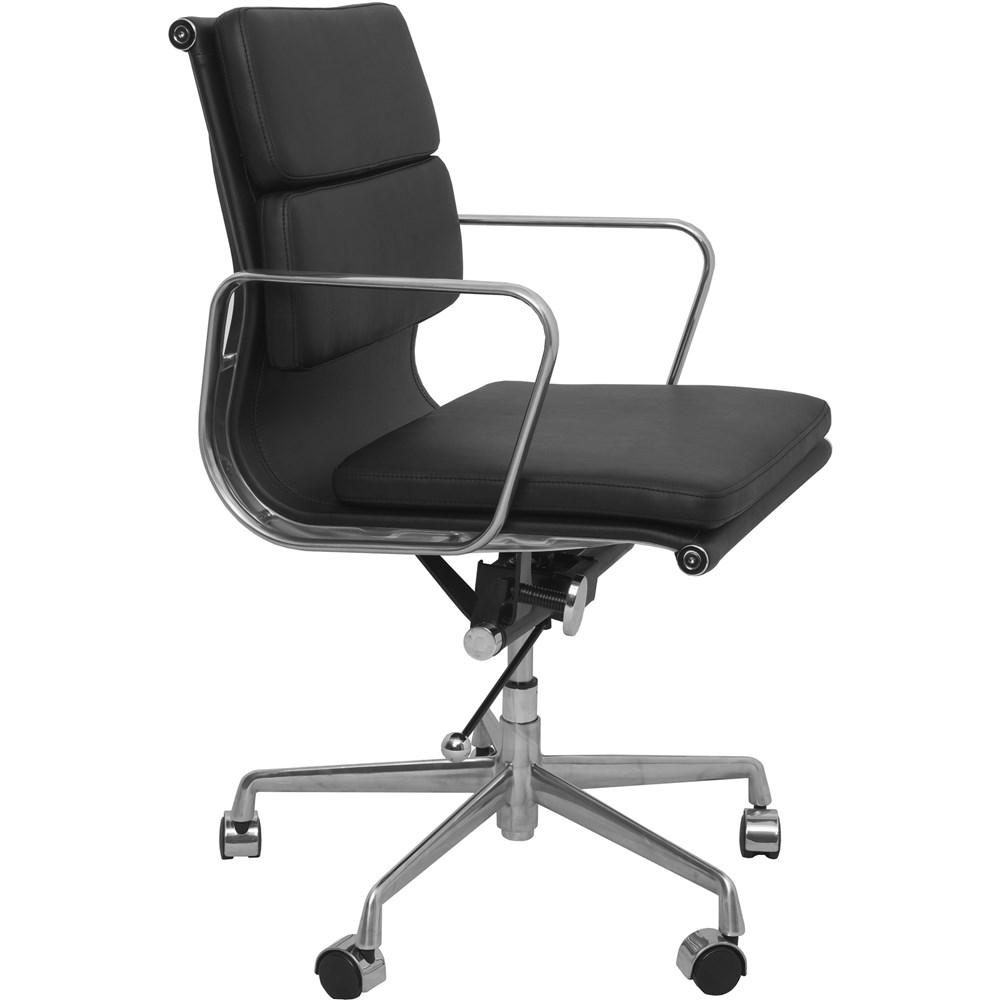 Rapidline PU900M Executive Chair Chrome Base And Arms Medium Back Black Padded PU