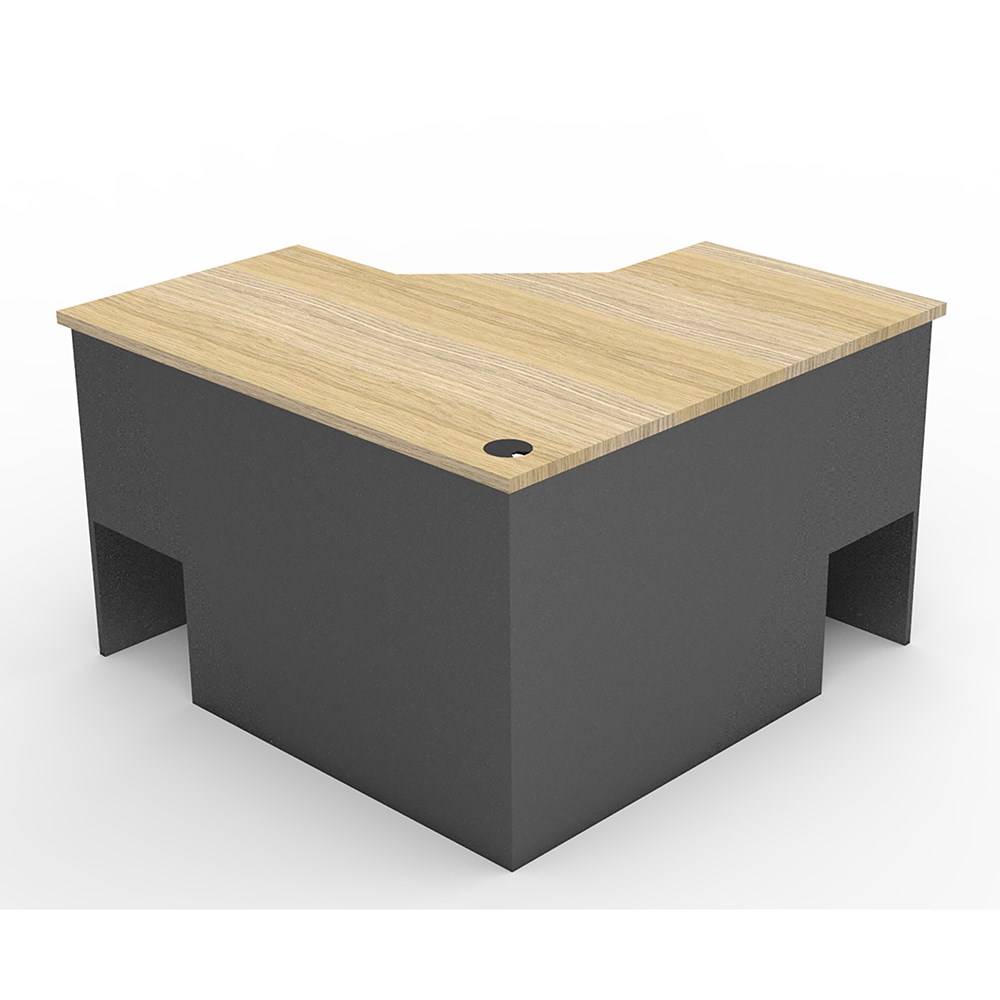 Natural Oak and Ironstone in colour. 3 piece corner workstation. Matching lockable drawers, mobile pedestal and hob available as extras. E0 enviroboard. 5 Years Manufacturer's Warranty.