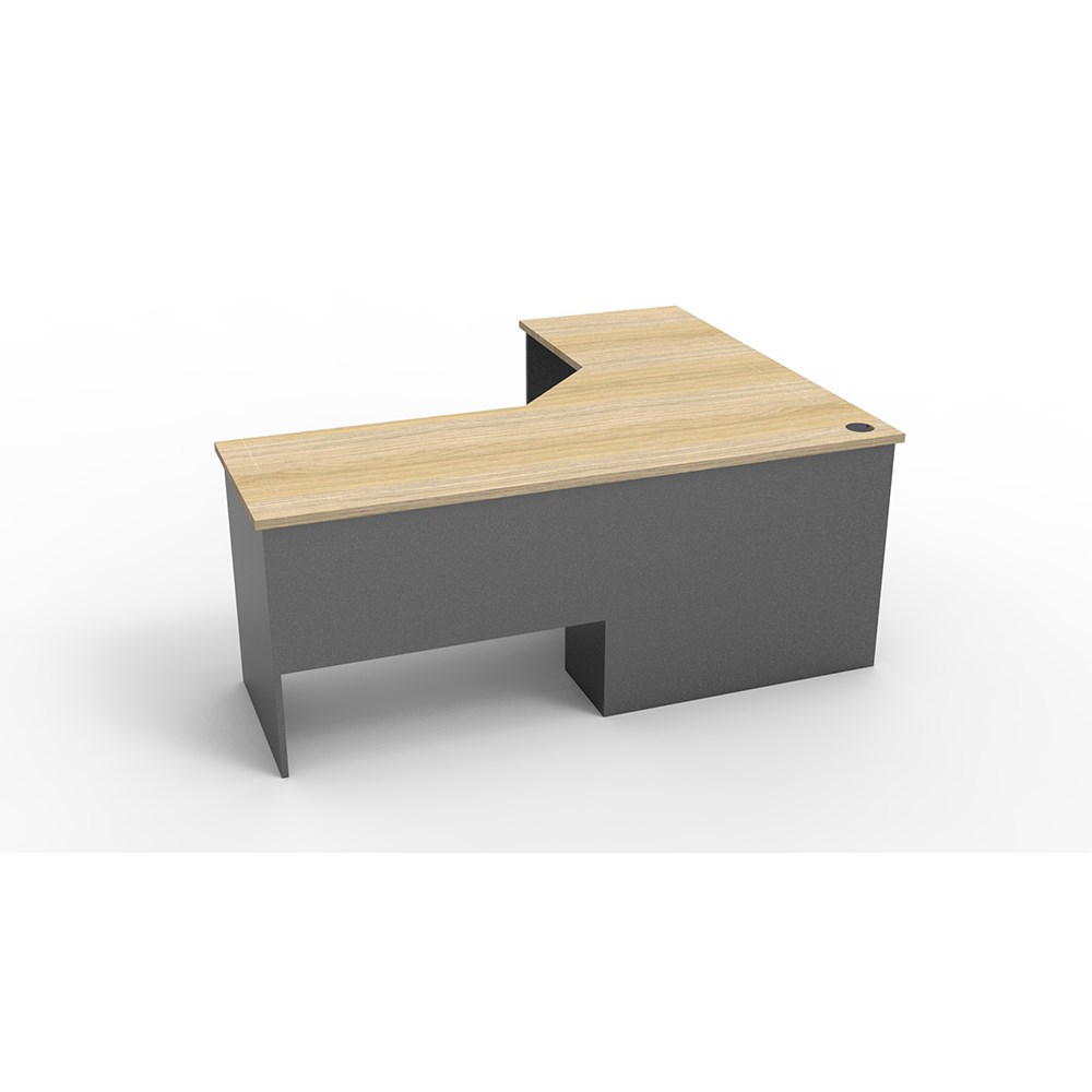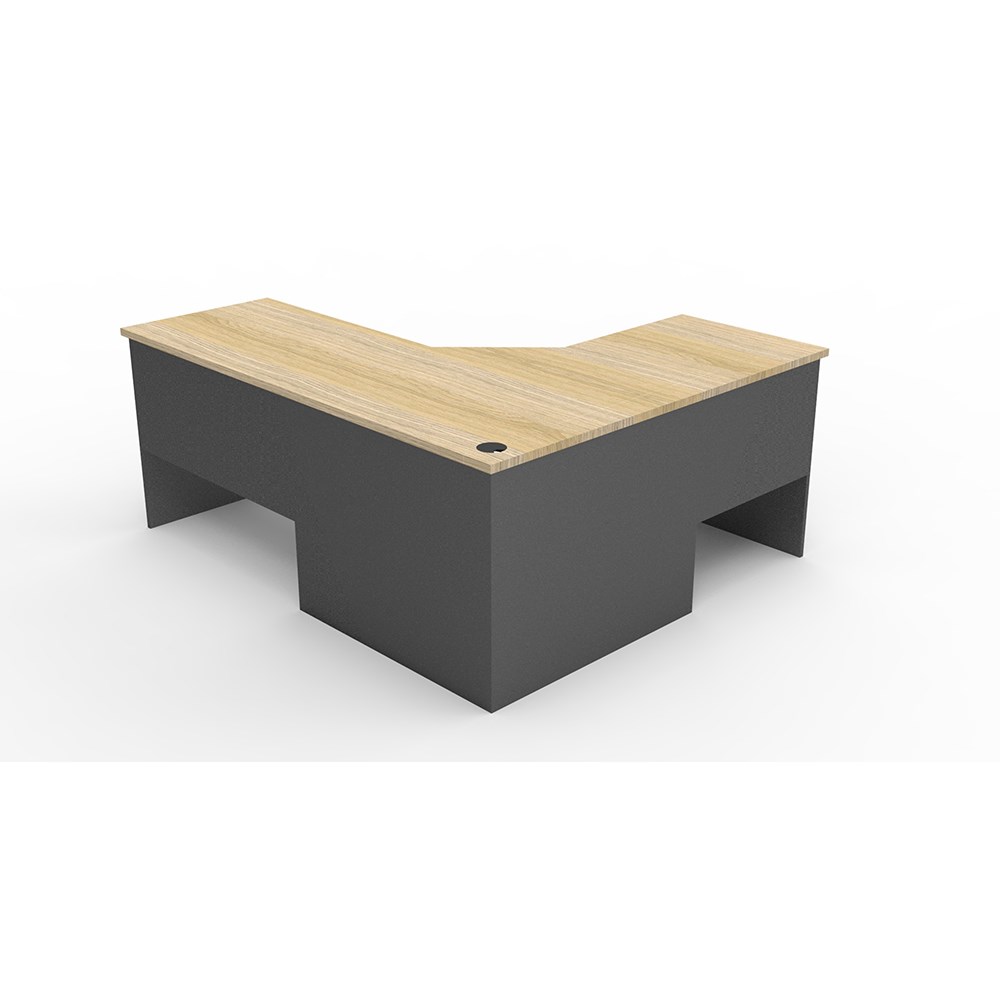Natural Oak and Ironstone in colour. 3 piece corner workstation. Matching lockable drawers, mobile pedestal and hob available as extras. E0 enviroboard. 5 Years Manufacturer's Warranty.