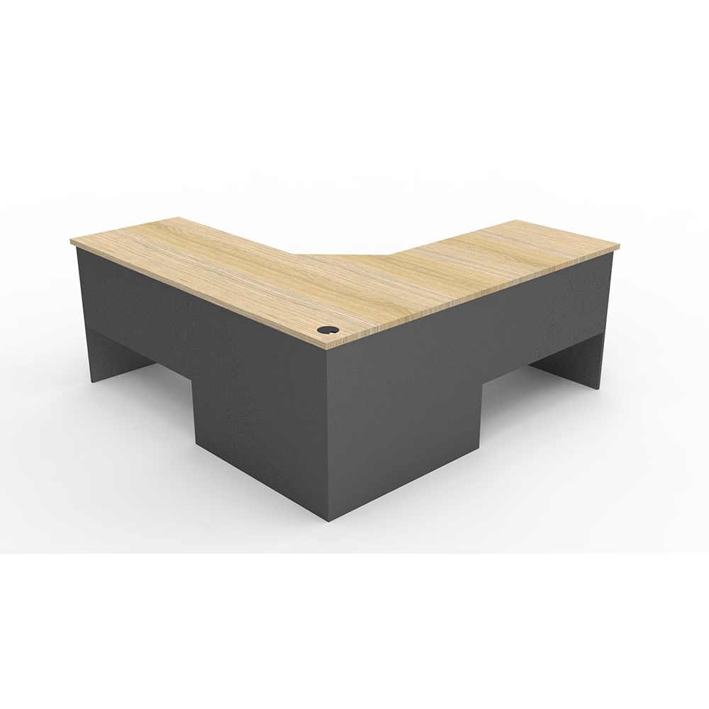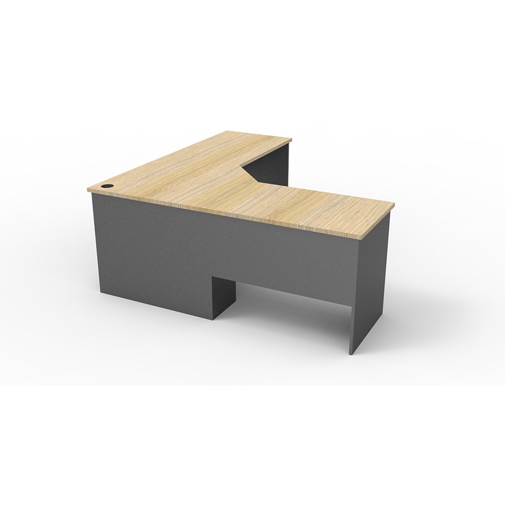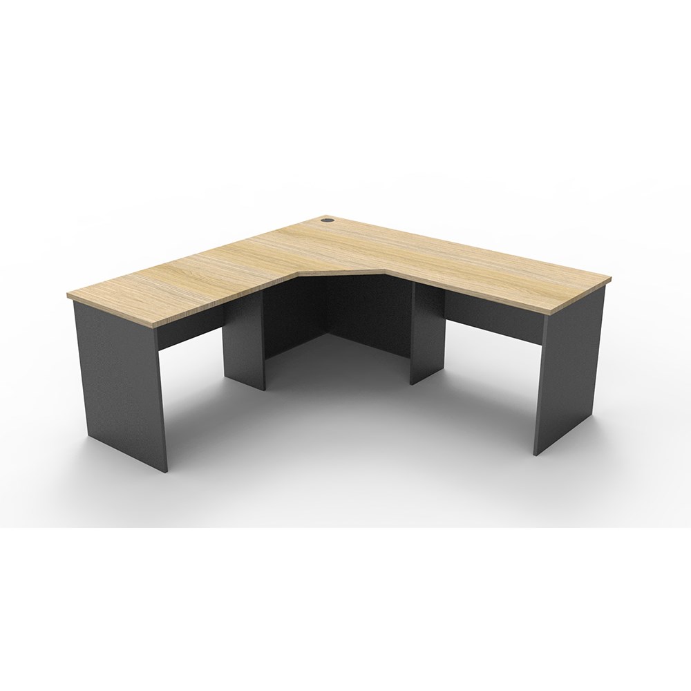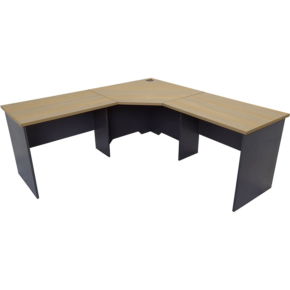 Natural Oak and Ironstone in colour. 3 piece corner workstation. Matching lockable drawers, mobile pedestal and hob available as extras. E0 enviroboard. 5 Years Manufacturer's Warranty.