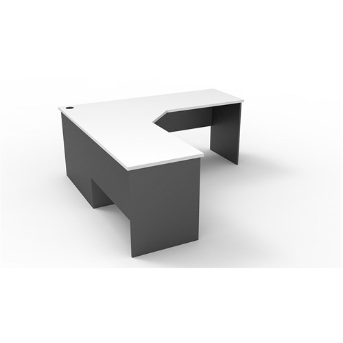 Natural White and Ironstone in colour. 3 piece corner workstation. Matching lockable drawers, mobile pedestal and hob available as extras. E0 enviroboard. 5 Years Manufacturer's Warranty.