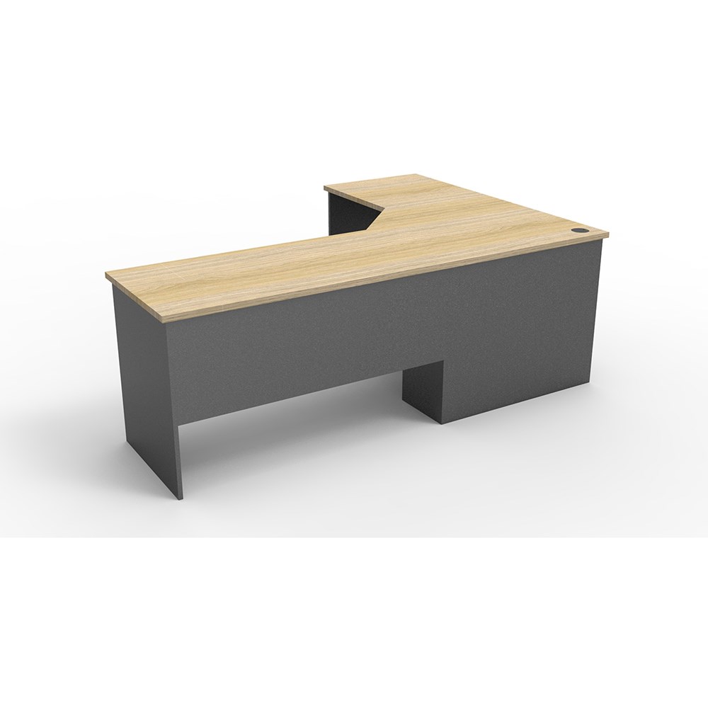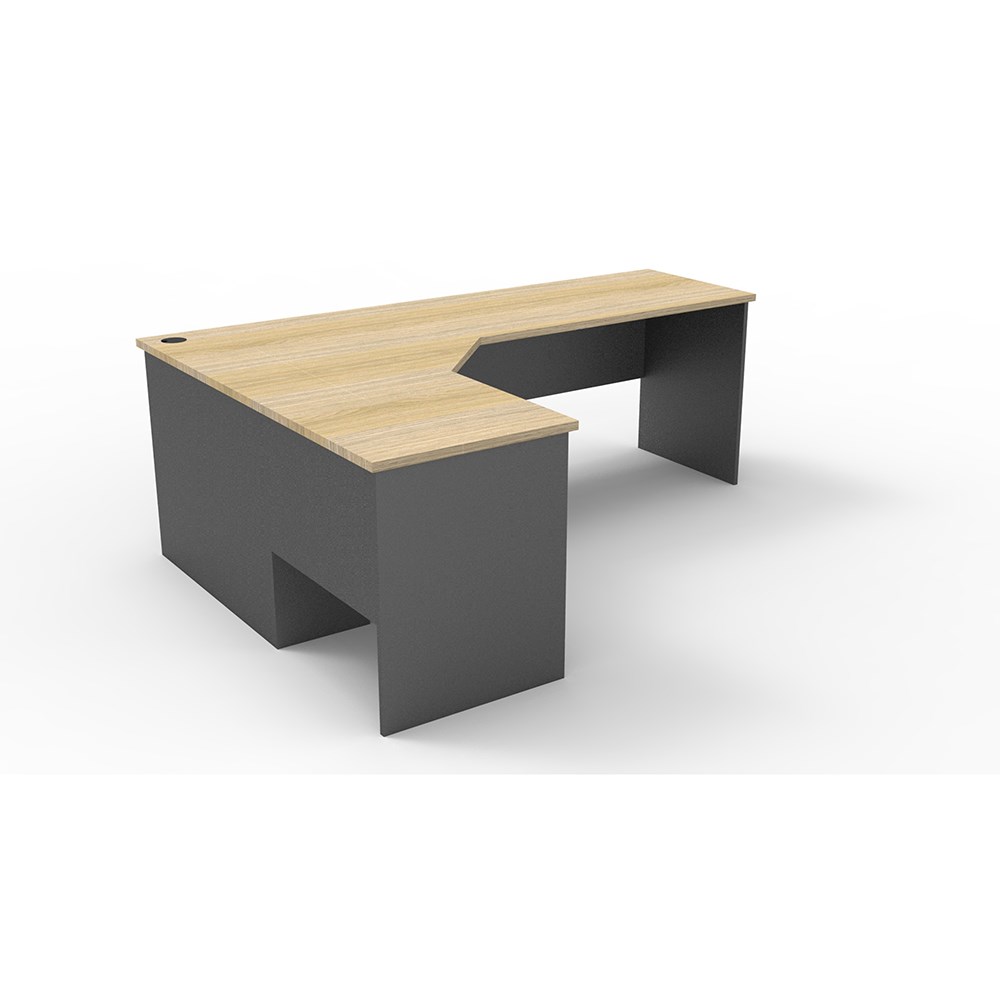 Natural Oak and Ironstone in colour. 3 piece corner workstation. Matching lockable drawers, mobile pedestal and hob available as extras. E0 enviroboard. 5 Years Manufacturer's Warranty.