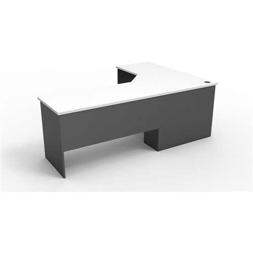 Natural White and Ironstone in colour. 3 piece corner workstation. Matching lockable drawers, mobile pedestal and hob available as extras. E0 enviroboard. 5 Years Manufacturer's Warranty.