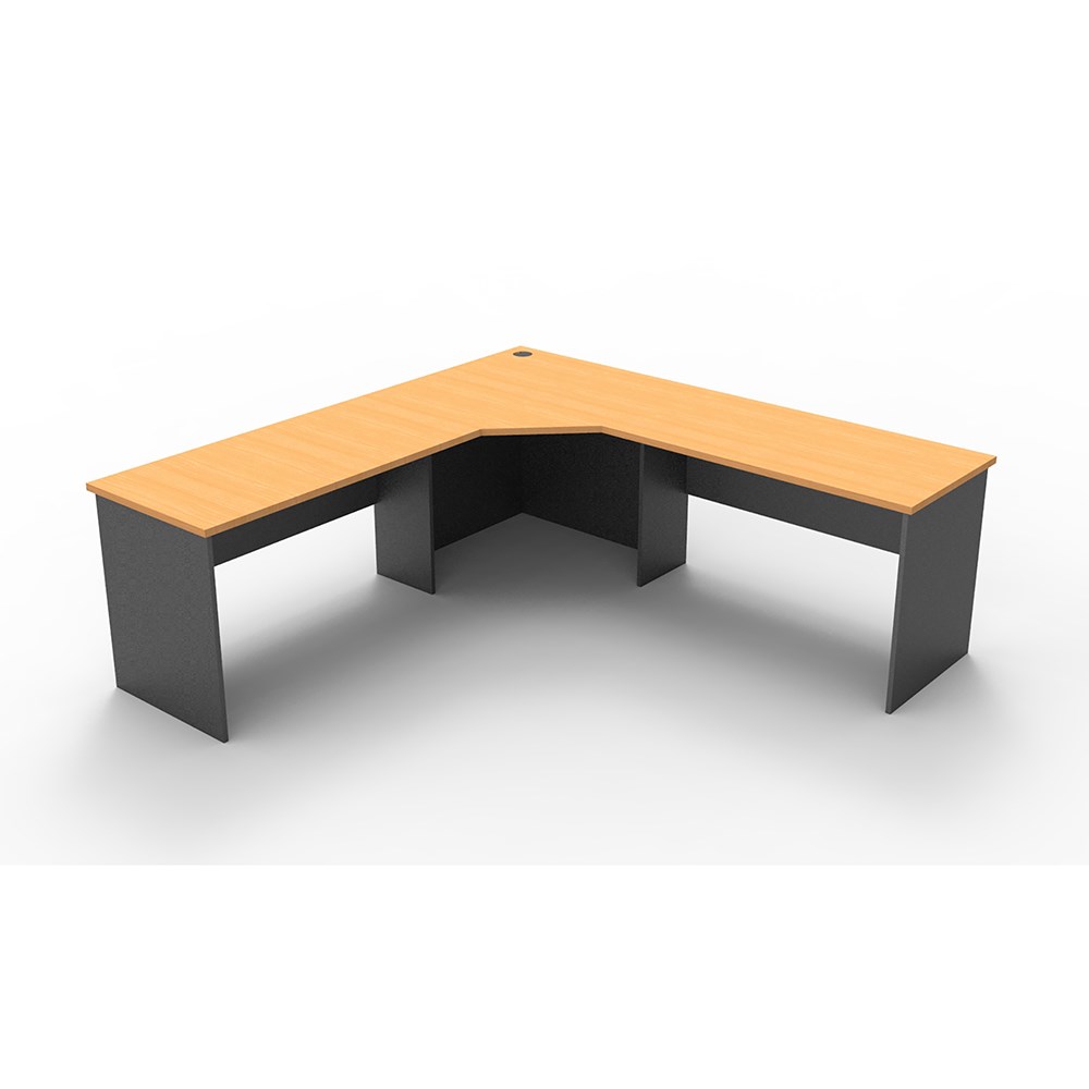 3 piece corner workstation. Matching lockable drawers, mobile pedestal and hob available as extras. E0 enviroboard. 5 Years Manufacturer's Warranty.