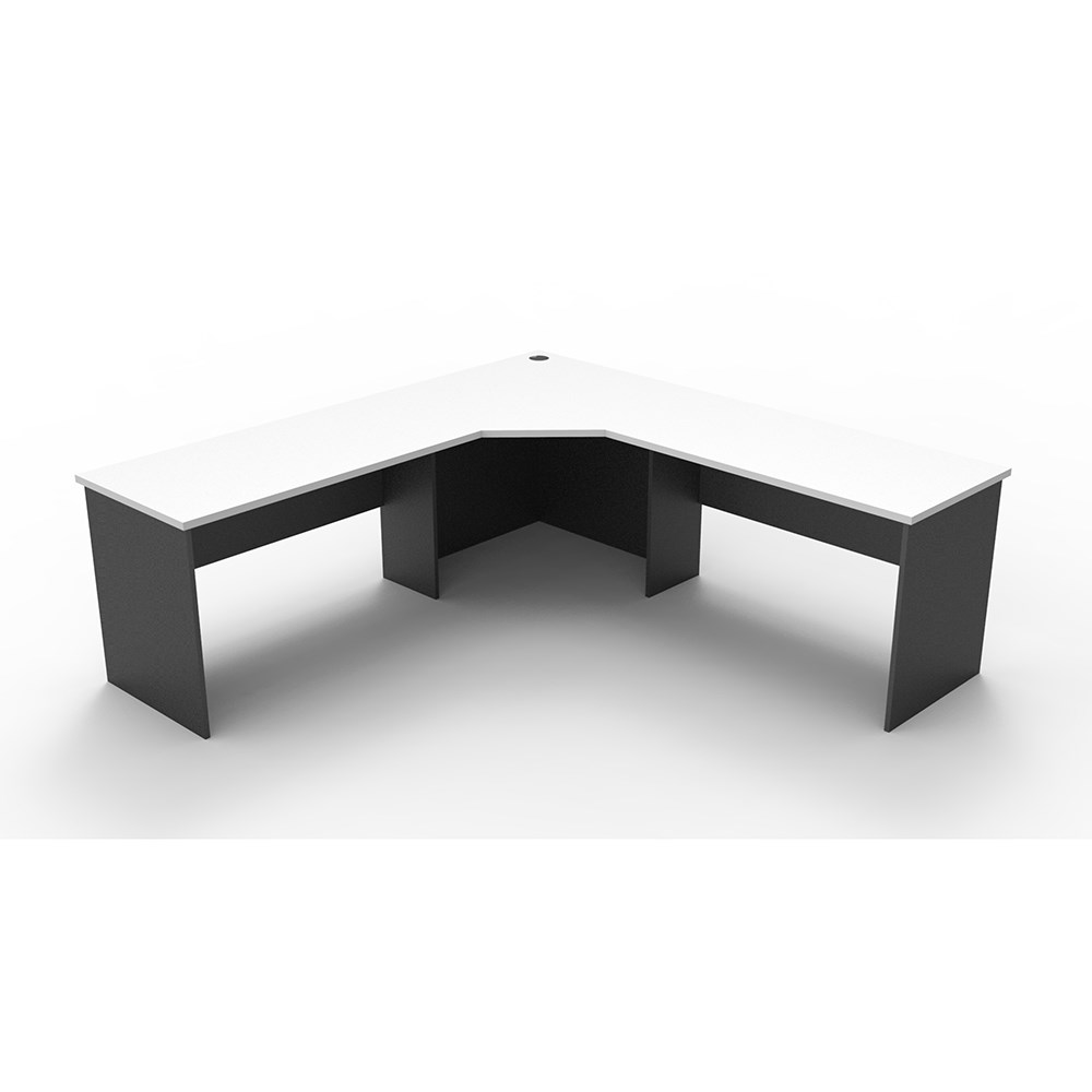 Natural White and Ironstone in colour. 3 piece corner workstation. Matching lockable drawers, mobile pedestal and hob available as extras. E0 enviroboard. 5 Years Manufacturer's Warranty.