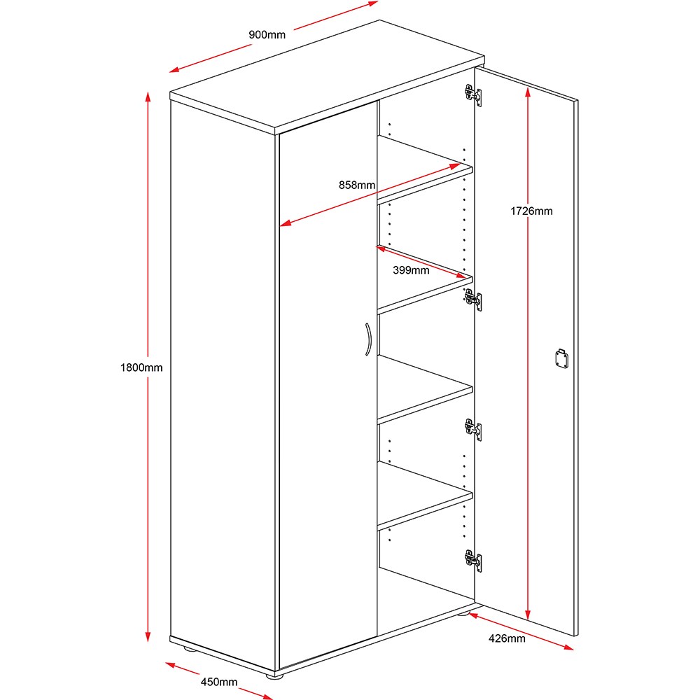 • The cupboard is fully lockable with 3 adjustable shelves and 1 fixed.
