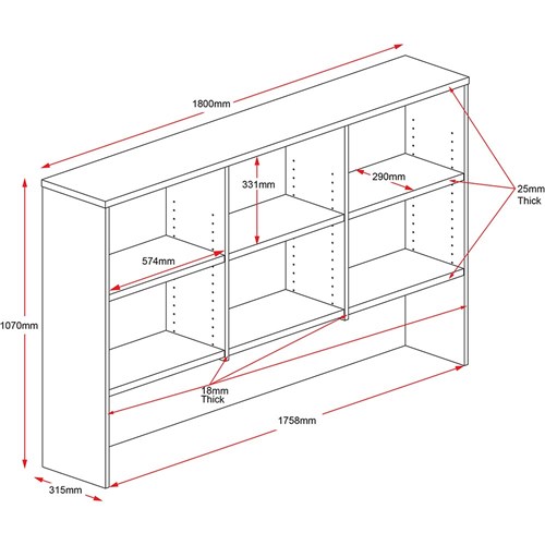 Rapidline Rapid Worker Overhead Hutch 1800W x 315D x 1070mmH Cherry And Ironstone 502273 In Stock Low Stock Low Stock Please See Attributes