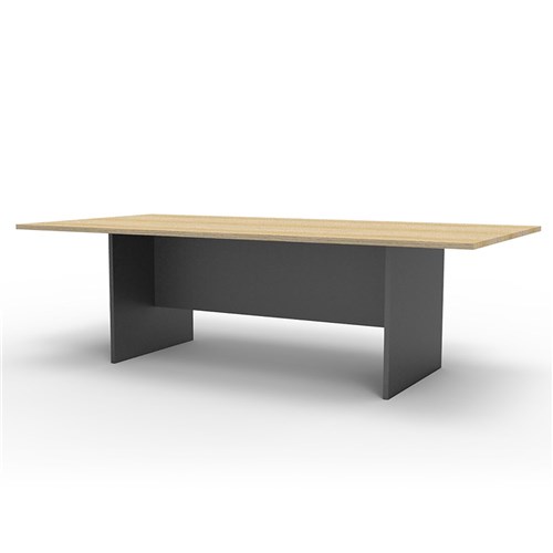 Natural Oak top Ironstone base. Boardroom Meeting Table. 25mm thick melamine top. 18mm Sides. Durable construction. With E0 safety standard rated melamine board. Matches with your Rapid Worker or Rapid Vibe office setting. 5 Year Manufacturer's Warranty.