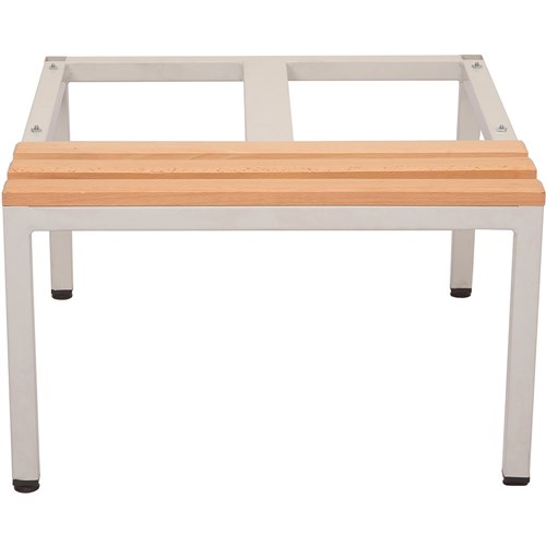 Allows the user to sit in front of the locker to change whilst allowing for cleaning underneath the unit. Seat and Stand to suit bank of 2 Lockers. Suitable for 305mm W Lockers ONLY. Single sided bench seat with light oak mod wood slats. Silver powder coated frame. Black levelling feet. 10 Year Manufacturer's Warranty. Delivery, installation and assembly charges may apply to furniture. Please enquire to confirm.