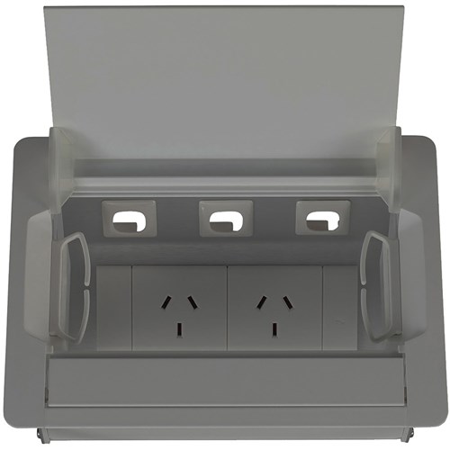 2 x auto switched GPO and provisions for 3 data. Lid closes to obscure power and data points. Links to wall starter or power pole kit. Use in conjunction with SW duct to avoid trip hazard. Unit Dimension: 211.5W x 154D x 115mmH. 2 Year Manufacturer's Warranty.