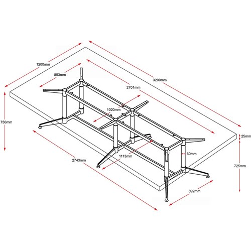 Rapidline Typhoon Boardroom Table 3200W x 1200D x 750mmH White Top Black Base with Chrome 2270219 In Stock Low Stock Low Stock Please See Attributes