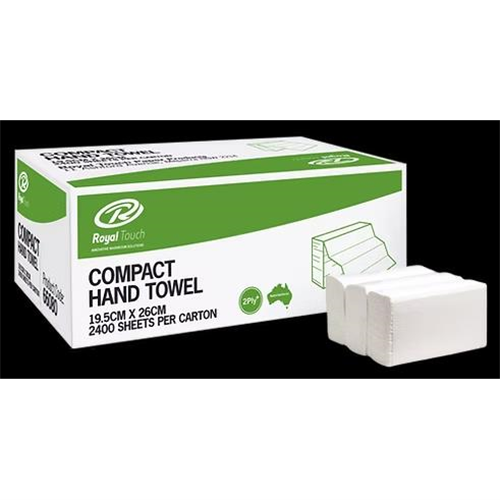 Royal Touch 2ply Compact Towel, 19 x 25cm, 120 Sheets, 20 pks in Carton, Folded width of 5cm