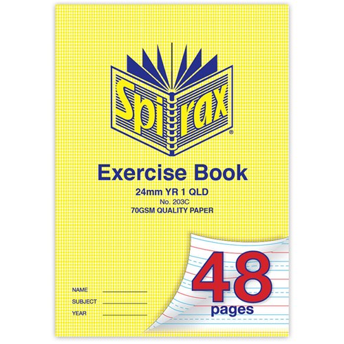 Spirax 203C Exercise Book A4 48 Page Queensland Rulings Year 1 24mm