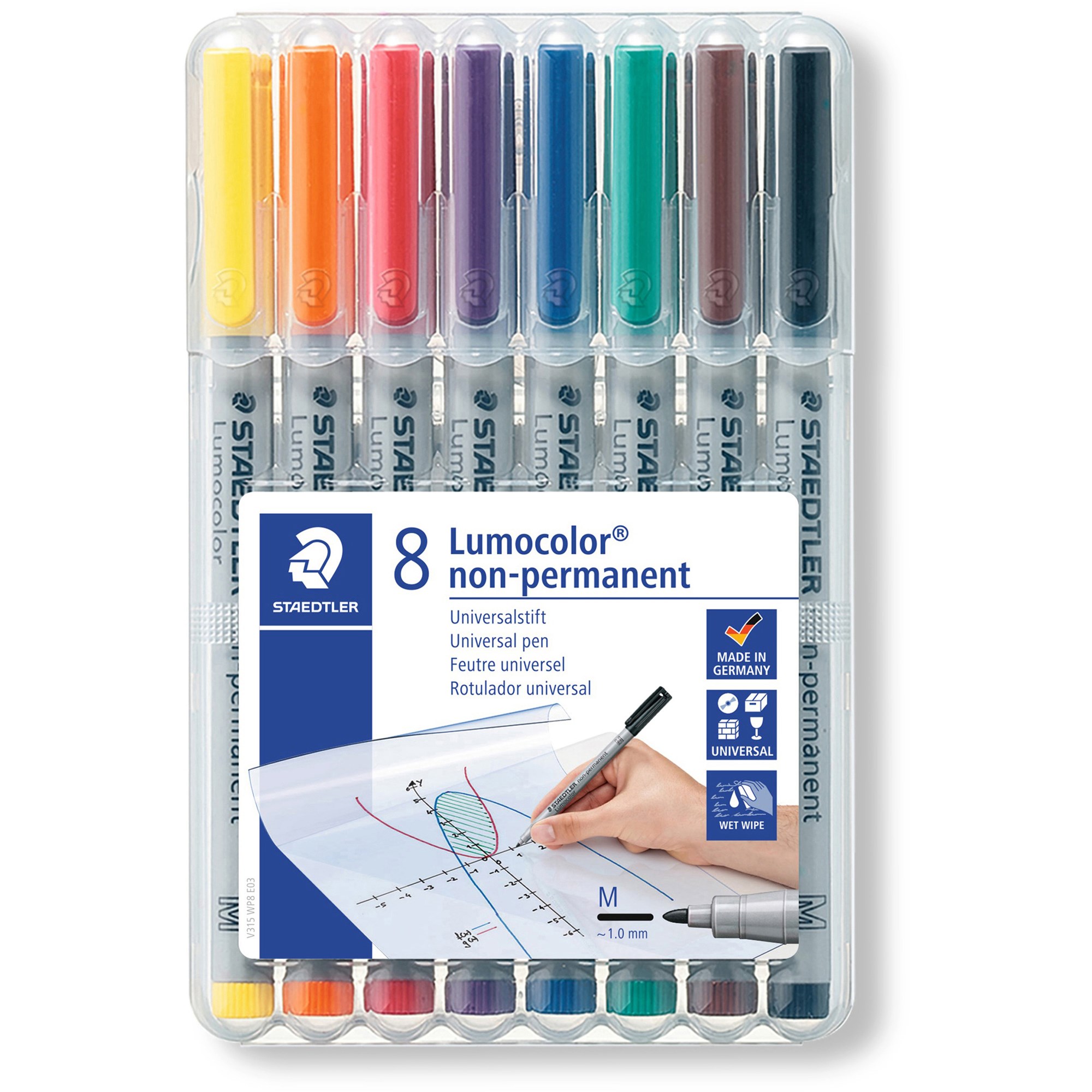 • Staedtler 315 Lumocolor Pens Non-Permanent Medium 1mm Wallet of 8