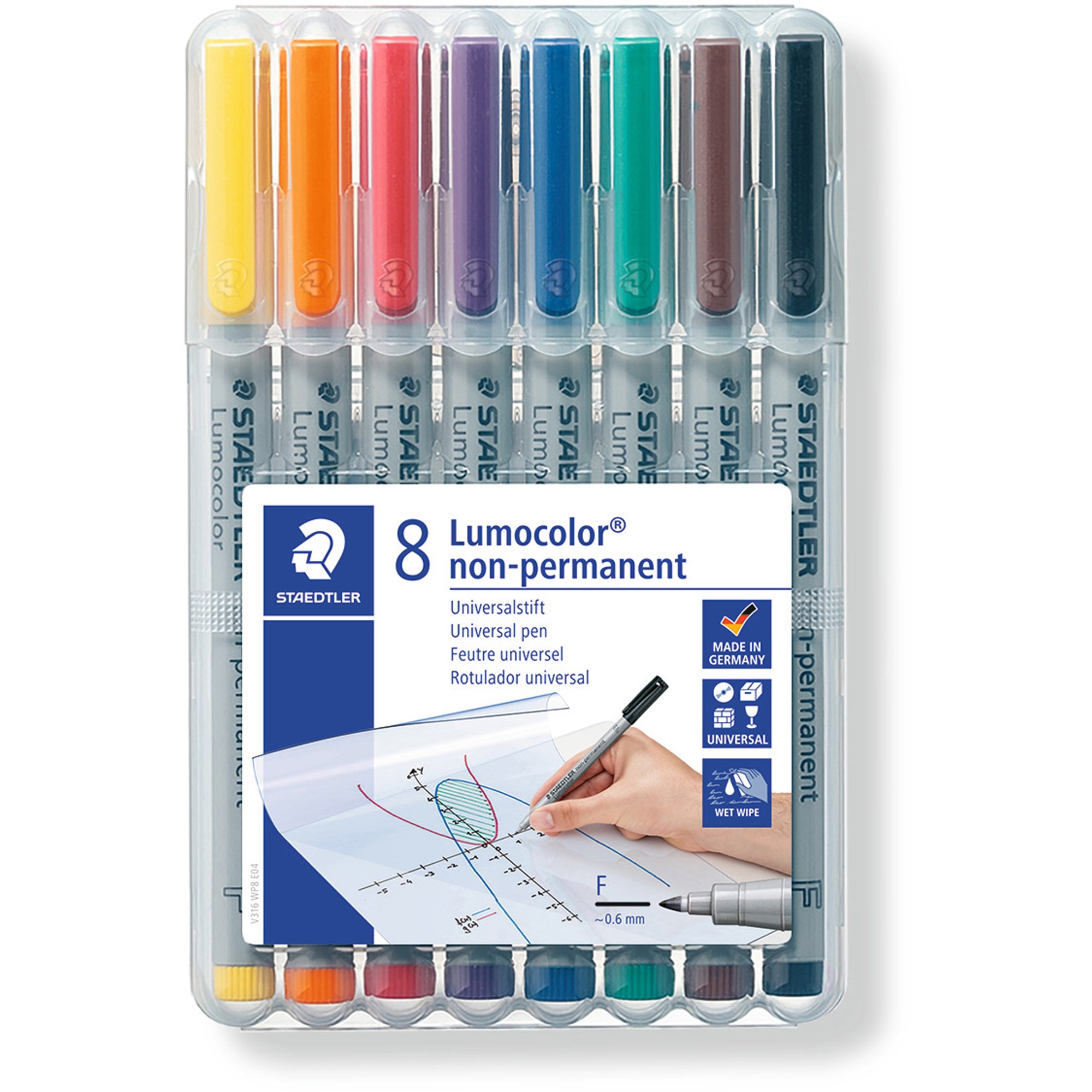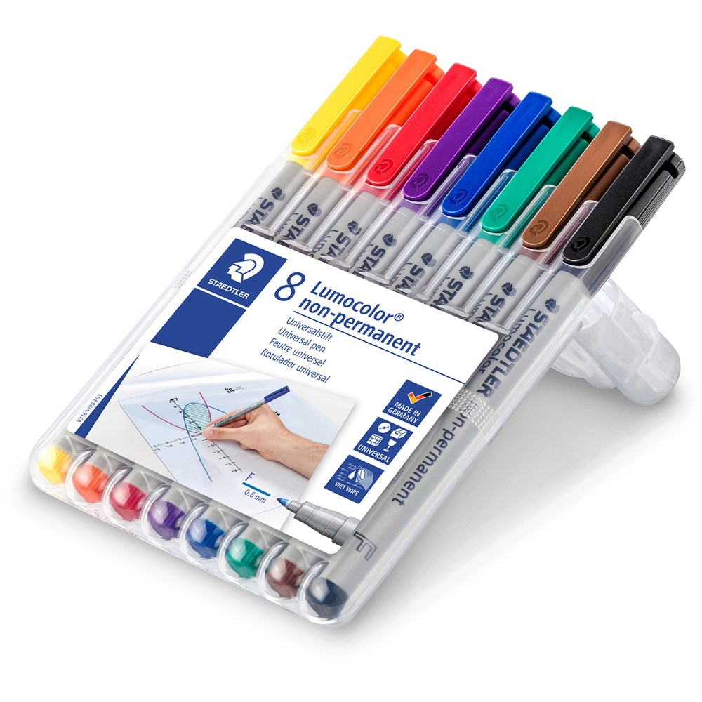 • Staedtler 316 Lumocolor Pens Non-Permanent Fine 0.6mm Wallet of 8
