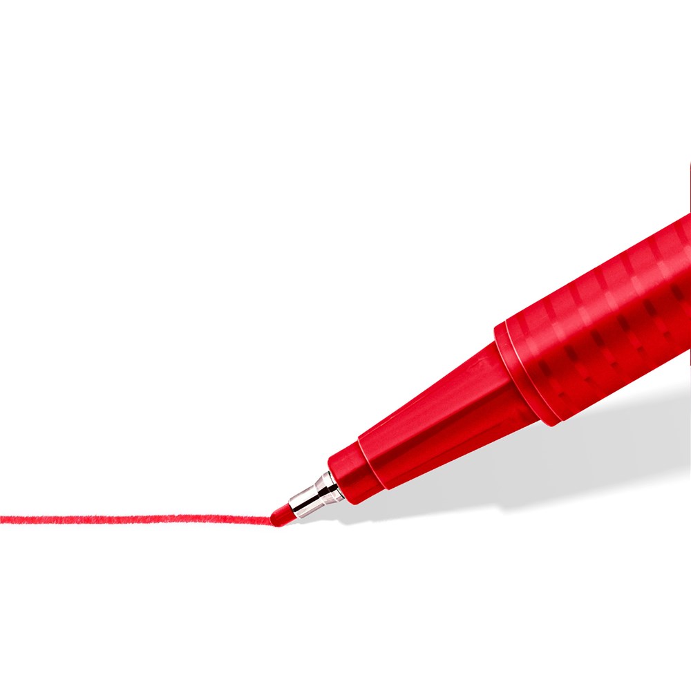 Ergonomic triangular barrel for effortless, fatigue free writing Dry safe ink Line width approximately 0.8mm Mix & match: all ink colours match the ink colours of the 323 fibretip pens and 334 fineliners Barrel with highquality matte finish in writing colour Cap and end plug in eye catching translucent design