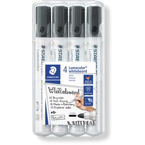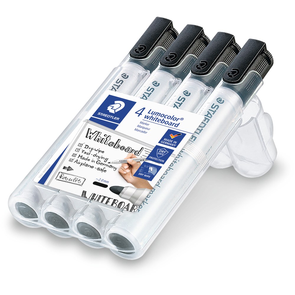 • Staedtler 351 Lumocolor Whiteboard Marker Bullet 2mm Black Wallet of 4